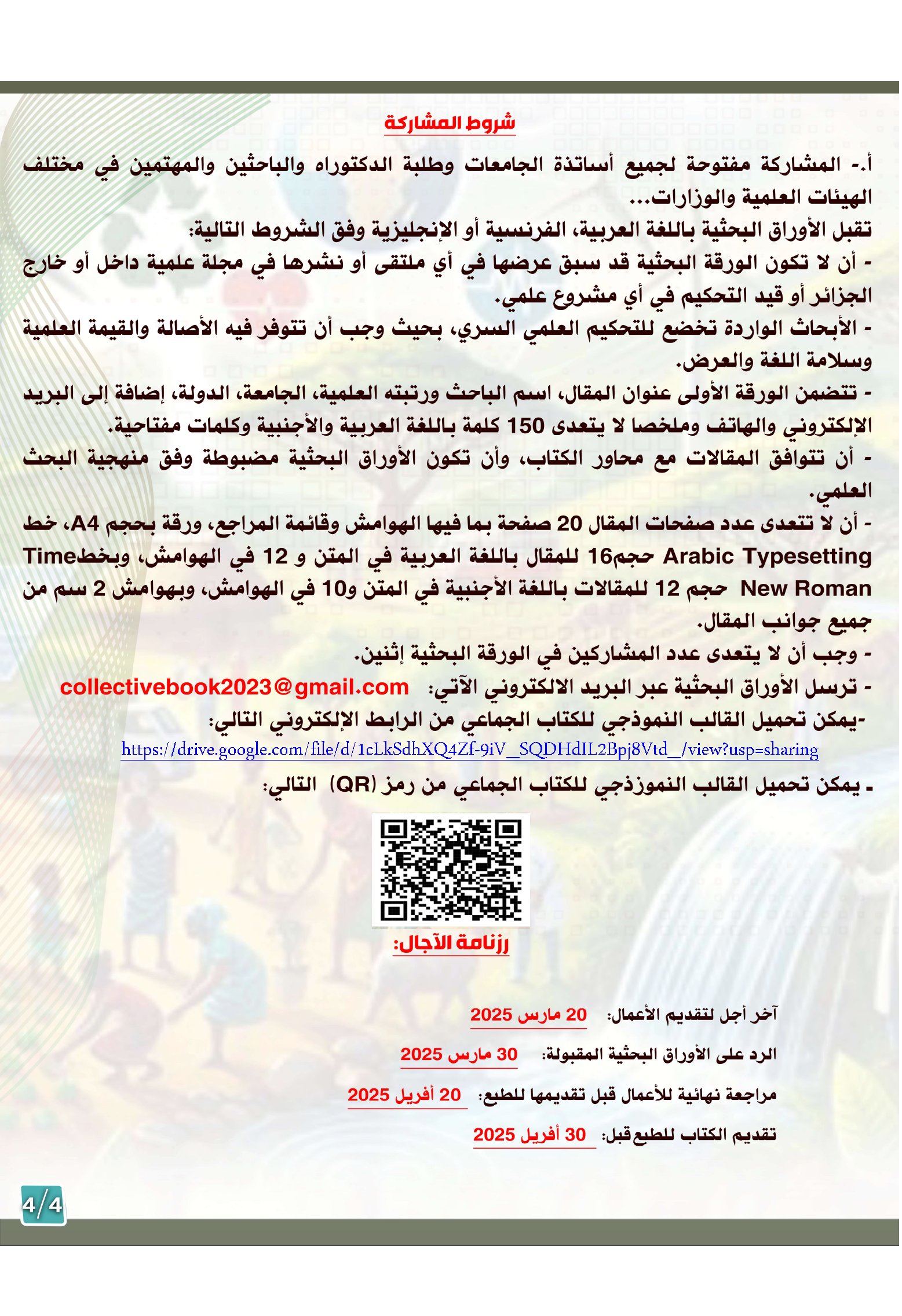 الإعلانات مشروع كتاب جماعي ذو ترقيم دولي موسوم بـ : السياسات البيئية والتنمية الصحية المستدامة في افريقيا On يناير 30, 2025 Share Share