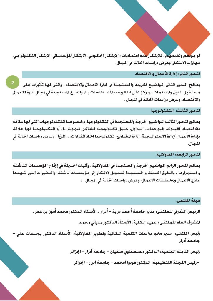 التظاهرات العلمية برنامج الملتقى الدولي متعدد التخصصات حول الابتكار ، الإدارة ، التكنولوجيا وريادة الأعمال Last updated فبراير 9, 2026 Share تحميل البرنامج الكامل Share